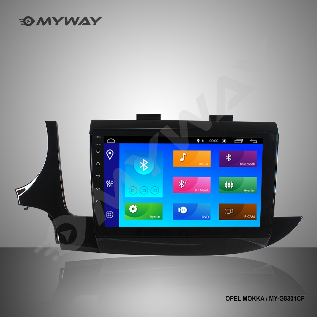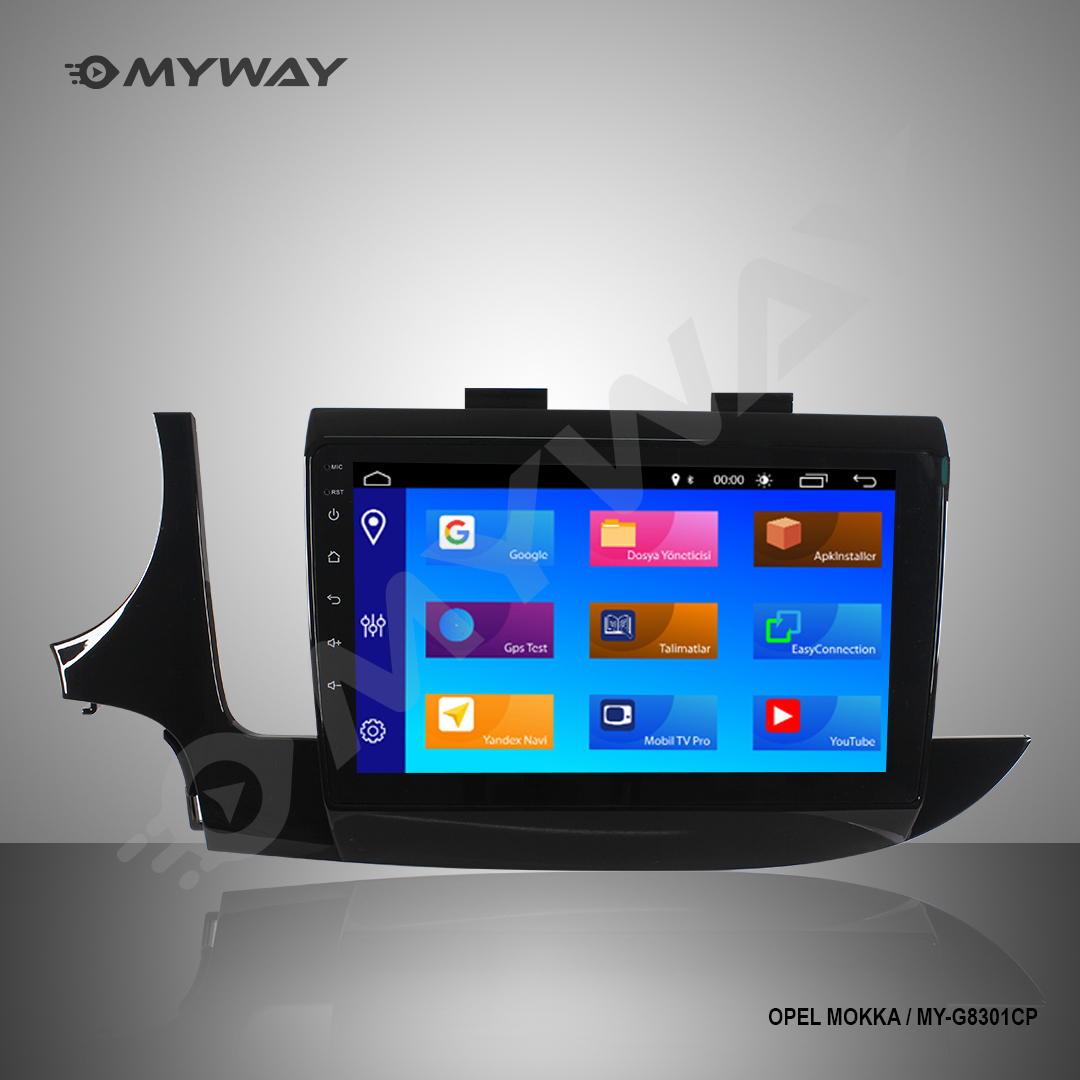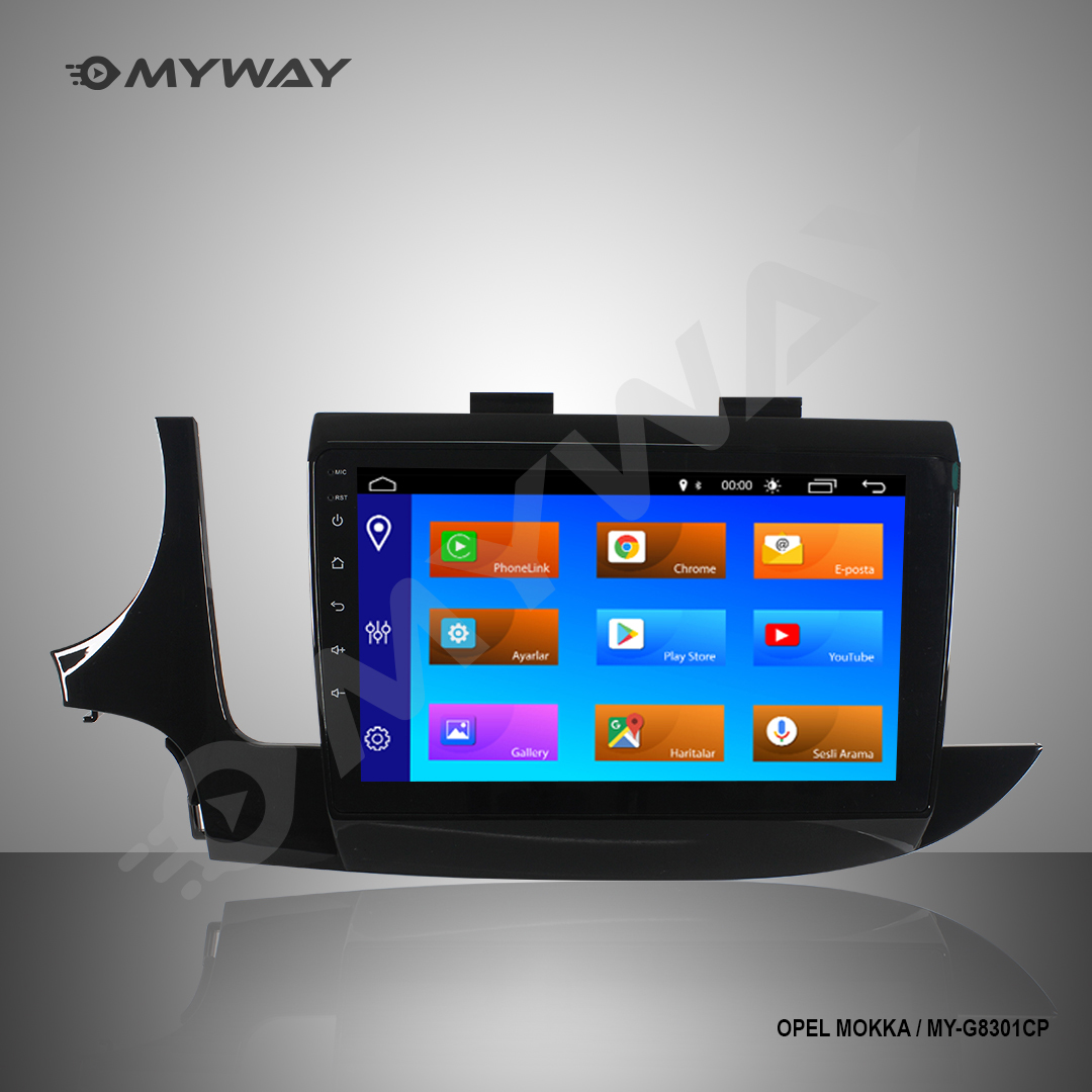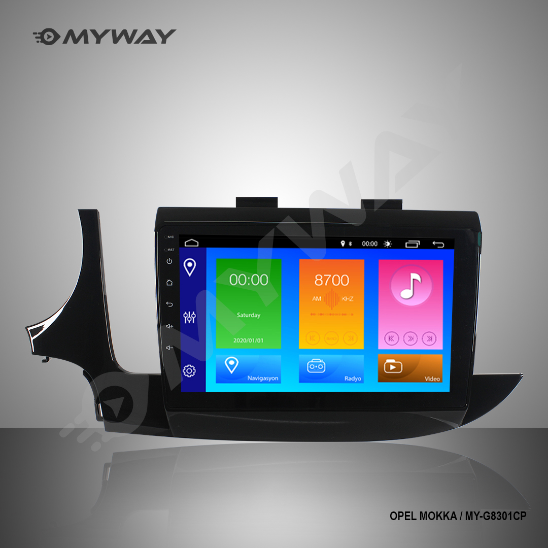Myway Opel Mokka android multimedya 9″ ekran 2016-2020 MY-G8301CP model multimedya cihazı Bluetooth desteği sayesinde cihaz üzerinden sesli aramalar yapabilir, telefonunuz üzerinden kişi rehberinizi cihazın dahili hafızasına aktarabilir ve dilediğinizce kablosuz bir şekilde dilediğiniz müziği dinleyebilirsiniz. Wifi özelliğini desteklemesi sayesinde de dilediğiniz uygulamayı Play Store üzerinden indirebilir ve istediğiniz sosyal medya uygulamalarını da yükleyebilirsiniz. Maillerinizi multimedya cihazı üzerinden görüntüleyebilir ve yanıtlayabilirsiniz böylece her daim işiniz ile bağlantı halinde kalmış olursunuz. Cihazın hızlı konum belirleyebilen dahili navigasyon sistemi sayesinde rahatça ek bir navigasyon uygulaması yüklemeden kullanabilirsiniz. Eğer isterseniz Play Store üzerinden de dilediğiniz navigasyon sistemini yükleyebilirsiniz. Geri görüş kamerası desteği ile aracınızı kolayca park edebilirsiniz.